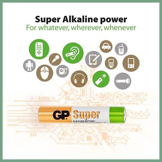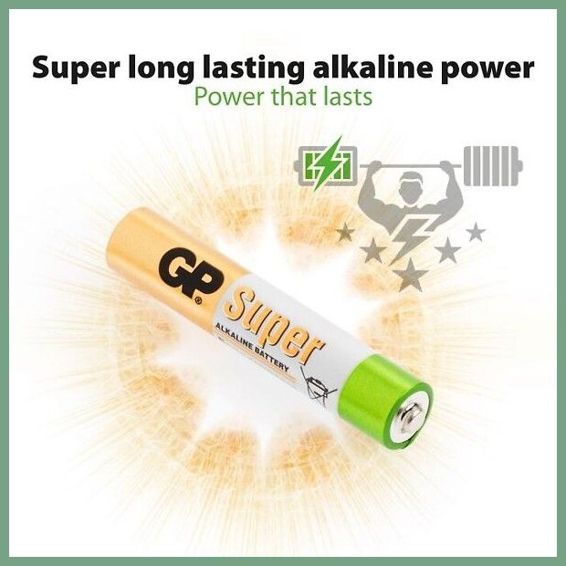 Aaaa paristo GP 2kpl/pak. Se on hyvä tuote, jonka verkkokaupan tilauksen toimitus kestää 1-2 päivää. Alkaliparisto, joka on tarkoitettu lähes kaikkiin tuotteisiin, jotka vaativat keskisuurta virtamäärää esim. lelut, seinäkellot, kaukosäätimet ja taskulamput. GP Super Alkaline on kattava tuoteperhe, jonka tuotteita on saatavana sekä bulkki- että blisteripakkauksissa. Jännite 1,5V. AAAA paristot myydään pakkauksittain, pakkauksessa on 2 kappaletta. Nopea sopimuskuljetuksemme toimittaa AAAA pariston ilman toimituskuluja toimitusosoitteeseen työpäivän aikana (8 - 15). Helsinki, Pori, Espoo, Vantaa... siis minne tahansa Suomeen.