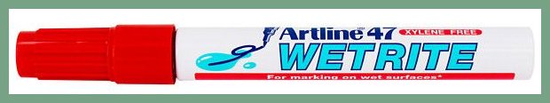 Artline WetriteMarker EK-47 punainen 1,5 mm pyöreä. Se on hyvä tuote, jonka verkkokaupan tilauksen toimitus kestää 1-2 päivää. Tuote on kehitetty erityisesti kosteiden pintojen merkkaukseen. Pysyvä jälki metallille, muoville, styroksille. Ksyleiinitön. Pyöreä, 1,5 mm kärki. Nopea kuljetuspalvelumme toimittaa tilauksen toimitusosoitteeseen klo 8 - 15 välillä. Turku, Oulu, Helsinki... siis minne tahansa Suomeen.