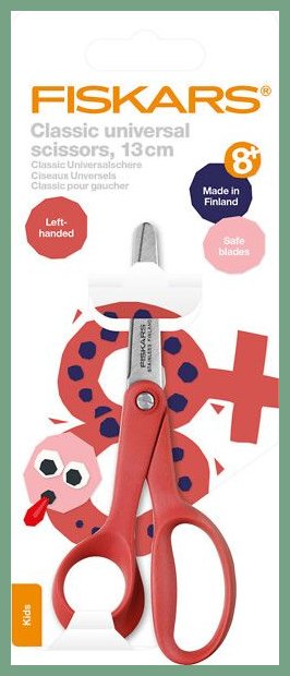 Askartelusakset Fiskars 13 cm vasen Classic vasenkätiset 13 cm. Tämän erinomaisen tuotteen verkkokaupan tilauksen toimitus kestää 1-2 päivää. Sakset on suunniteltu kahdeksanvuotiaille ja sitä vanhemmille lapsille, jotta kaikenikäisillä luovilla neroilla olisi oikeat työvälineet itsensä toteuttamiseen. Sakset on tarkoitettu vasenkätisille. Patentoitu ruuvisäätöinen terätiukkuus. Voidaan pestä astianpesukoneessa. Sakset ovat iskunkestävät. Vasenkätiset. Varma kuljetuspalvelumme toimittaa askartelusakset toimitusosoitteeseen klo 8 - 15 välillä. Kuopio, Turku, Helsinki... eli kaikkialle Suomeen.