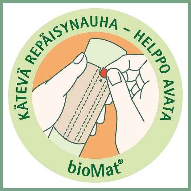 Biojätepussi bioMat 40L 520x630mm 10kpl (16rll/ltk). Se on tasokas jätehuoltotuote, jonka verkkokaupan tilauksen toimitus kestää 1-2 päivää. BIOMAT® kompostoituvat biopussit on tehty samettisen pehmeästä, nestetiiviistä ja hengittävästä kalvosta. Tuotteiden biohajoavuus ja kompostoituvuus täyttää standardin EN13432 vaatimukset. BIOMAT® tuotteet ovat OK Compost HOME sertifioituja (enintään 0,026 vahvat tuotteet). Biojätepussit myydään 16 rullan erissä. Pakkauskoot rullassa on 10 kappaletta, laatikossa on 16 rullaa. Varma toimituspalvelumme kuljettaa biojätepussin toimitusosoitteeseen kello 8.00 - 15.00. Helsinki, Pori, Espoo, Vantaa... toisin sanoen kaikkialle Suomeen.