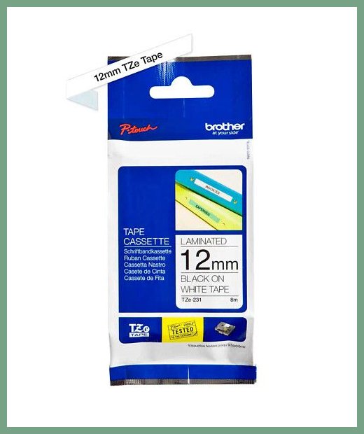 Brother tarranauha TZe-231 12mm/8m musta/valkoinen. Tämän erinomaisen toimistotuotteen toimituksen kesto verkkokaupasta tilattuna 1-2 päivää. Alkuperäisellä Brother TZe231 tarranauhalla voit luoda kestäviä ja selkeitä merkintöjä. Tarramerkinnät ovat käteviä kotona ja työpaikalla. TZe231-tarranauhaa voidaan käyttää esimerkiksi kansioiden, hyllyreunojen, muistitikkujen, johtojen sekä muiden tarvikkeiden ja laitteiden merkintään. Laminoidut tarranauhat kestävät suuria lämpötilavaihteluita, kemikaaleja, hankausta, auringonvaloa ja vettä, jonka vuoksi ne soveltuvat erinomaisesti sisä- ja ulkokäyttöön. TZe-tarranauhoja on saatavina useina eri tarraleveyksinä, -väreinä ja materiaaleina, joten löydät varmasti käyttötarkoituksesi mukaisen nauhan. Tarranauhojen vaihtaminen on helppoa ja nopeaa. Tehokas kuljetuspalvelumme toimittaa tarranauhan toimitusosoitteeseen klo 8 - 15 välillä. Turku, Oulu, Helsinki... eli kaikkialle Suomeen.