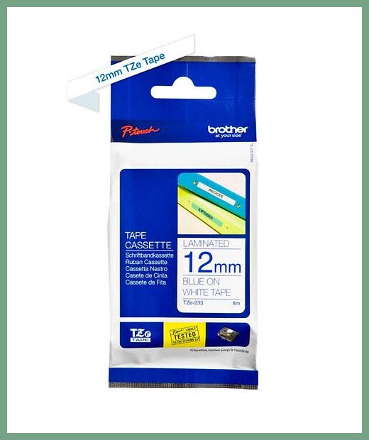 Brother tarranauha TZe-233 12mm/8m sininen/valkoinen. Se on laadukas toimistotarvike, jonka verkkokauppatilauksen toimitus perille kestää 1-2 päivää. Lisätietoja tästä tuotteesta Alkuperäisellä Brother TZe-233 -tarranauhalla teet selkeitä ja helppolukuisia tarramerkintöjä, jotka kestävät. Tarramerkinnät ovat käteviä kotona ja työpaikalla, esimerkiksi kansioiden, hyllyreunojen, muistitikkujen, johtojen ja muiden tavaroiden järjestämiseen. Laminoidut tarrat kestävät lämpötilojen vaihtelua, kemikaaleja, hankausta, auringonvaloa ja vettä, joten ne soveltuvat sekä sisä- että ulkokäyttöön. TZe-tarranauhat on helppo asentaa ja niitä on saatavilla eri leveyksinä, väreinä ja materiaaleina. Voit siis käyttää P-touch-tarratulostintasi hyvin monipuolisesti. Luotettava sopimuskuljetuksemme toimittaa tarranauhan toimitusosoitteeseen työpäivän aikana (8 - 15). Kuopio, Turku, Helsinki... toisin sanoen kaikkialle Suomeen.