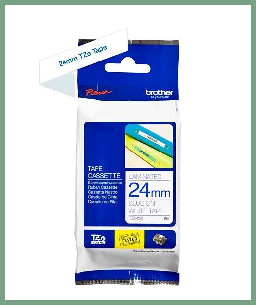 Brother tarranauha TZe-253 24mm/8m sininen teksti / valkoinen po. Tämän erinomaisen toimistotarvikkeen verkkokauppa tilauksen kuljetus perille asti kestää 1-2 päivää. Alkuperäisellä Brother TZe253 -tarranauhalla teet selkeitä ja helppolukuisia merkintöjä, jotka kestävät. Tarramerkinnät ovat käteviä kotona ja työpaikalla. TZe253-tarranauhaa voidaan käyttää esimerkiksi kansioiden, hyllyreunojen, muistitikkujen, johtojen sekä muiden tarvikkeiden ja laitteiden merkintään. Laminoidut tarrat kestävät lämpötilojen vaihtelua, kemikaaleja, hankausta, auringonvaloa ja vettä, joten ne soveltuvat sekä sisä- että ulkokäyttöön. TZe-tarranauhoja on saatavana useina eri tarraleveyksinä, -väreinä ja materiaaleina, joten löydät varmasti käyttötarkoitukseen sopivan nauhan. Tarranauhojen vaihtaminen on helppoa ja nopeaa. Täsmällinen sopimuskuljetuksemme toimittaa tarranauhan ilman toimituskuluja toimitusosoitteeseen työpäivän aikana (8 - 15). Helsinki, Turku, Tampere... siis minne tahansa Suomeen.