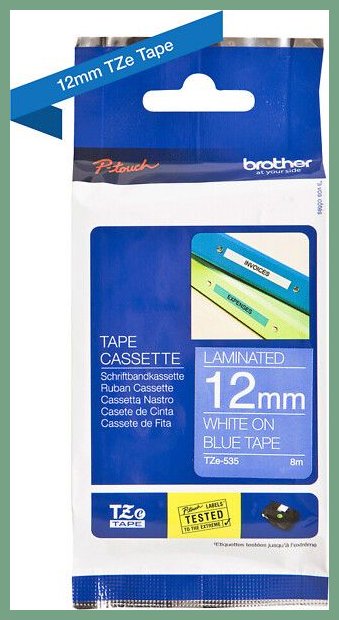 Brother tarranauha TZe-535 12mm/8m valkoinen/sininen. Se on erinomainen toimistotuote, jonka verkkokauppatilauksen toimitus perille kestää 1-2 päivää. Alkuperäisellä Brother TZe535 -tarranauhalla teet selkeitä ja helppolukuisia merkintöjä, jotka kestävät. Tarramerkinnät ovat käteviä kotona ja työpaikalla. TZe535-tarranauhaa voidaan käyttää esimerkiksi kansioiden, hyllyreunojen, muistitikkujen, johtojen sekä muiden tarvikkeiden ja laitteiden merkintään. Laminoidut tarrat kestävät lämpötilojen vaihtelua, kemikaaleja, hankausta, auringonvaloa ja vettä, joten ne soveltuvat sekä sisä- että ulkokäyttöön. TZe-tarranauhoja on saatavina useina eri tarraleveyksinä, -väreinä ja materiaaleina, joten löydät varmasti käyttötarkoitukseen sopivan nauhan. Tarranauhojen vaihtaminen on helppoa ja nopeaa. Täsmällinen kuljetuspalvelumme toimittaa tarranauhan ilman toimituskuluja toimitusosoitteeseen klo 8 - 15 välillä. Turku, Oulu, Helsinki... siis minne tahansa Suomeen.
