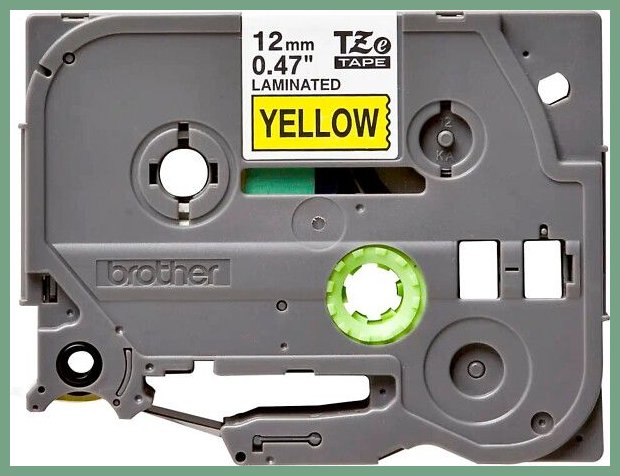 Brother tarranauha 12mm/8m musta/ keltainen taipuisa