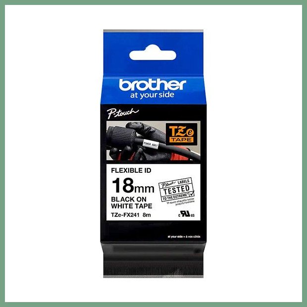 Brother tarranauha TZe-FX241 18mm/8m taipuisa. Se on laadukas toimistotarvike, jonka toimitus hoidetaan heti kun sitä saapuu varastoon (n. viikko). musta teksti, valkoinen pohja. Täsmällinen toimituspalvelumme kuljettaa tarranauhan ilmaisella toimituksella toimitusosoitteeseen kello 8.00 - 15.00. Helsinki, Turku, Tampere... eli kaikkialle Suomeen.
