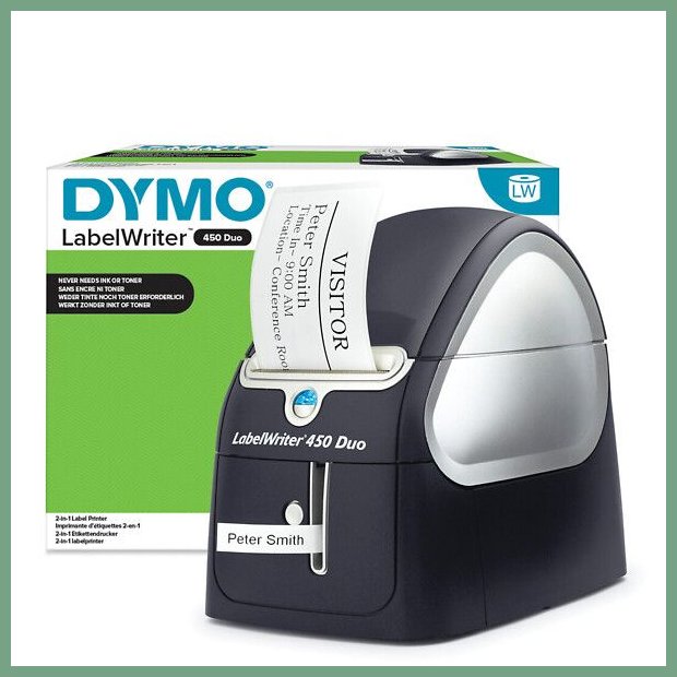 Dymo tarratulostin Labelwriter 450 DUO. Se on hyvälaatuinen toimistotuote, jonka verkkokauppatilauksen toimitus perille kestää 1-2 päivää. Tulosta paljon erilaisia DYMO-tarroja samalla monipuolisella tulostimella. Sisältää kaikki 450-tulostimen ominaisuudet ja lisäksi: Voit tulostaa erivärisiä ja -kokoisia postitus- ja lähetystarroja (LW) sekä 6,9,12,19,24mm D1-teippejä. Tulostaa nopeasti - jopa 71 tarraa minuutissa (nelirivinen osoitetarra). Sisältää patentoidun ilmaisen ja helppokäyttöisen DYMO ohjelmiston. 2 vuoden takuu ja 1 vuoden lisätakuu osoitteessa dymo.com. Tietokoneeseen liitettävä (PC, Mac) USB liitännällä. Täsmällinen toimituspalvelumme kuljettaa tarratulostimen ilmaisella toimituksella toimitusosoitteeseen kello 8.00 - 15.00. Helsinki, Turku, Tampere... siis minne tahansa Suomeen.