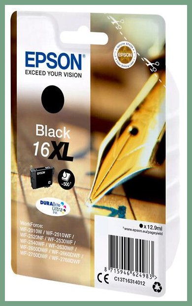 Epson muste 16XL T1631 musta värikasetti. Laadukas musta Epson WF 2010W mustekasetti. Mustekasetin toimitusaika verkkokaupasta tilattuna on 1-2 päivää. Tehokas toimituspalvelumme kuljettaa mustekasetin ilmaisella toimituksella toimitusosoitteeseen kello 8.00 - 15.00. Helsinki, Pori, Espoo, Vantaa... toisin sanoen kaikkialle Suomeen.