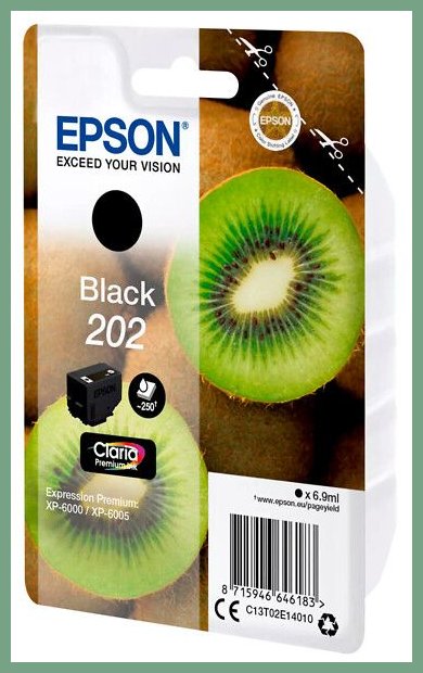 Epson muste 202 C13T02E14010 musta värikasetti Claria Premium. Se on hyvä tulostintarvike, joka toimitetaan heti kun sitä saapuu varastoon (n. viikko). Epsonin musteet ja paperit on suunniteltu varta vasten Epsonin tulostimia varten, ja ne takaavat parhaan mahdollisen tuloksen kerta toisensa jälkeen. Täsmällinen toimituspalvelumme kuljettaa mustekasetin ilmaisella toimituksella toimitusosoitteeseen kello 8.00 - 15.00. Helsinki, Turku, Tampere... toisin sanoen kaikkialle Suomeen.