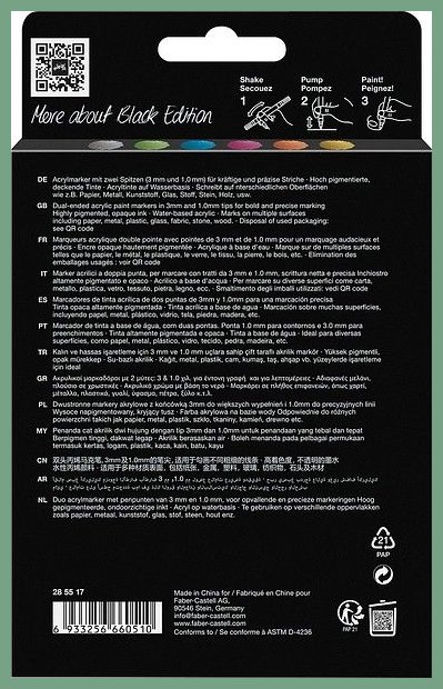 FC Shake & Paint Akryylitussi 4metalliväriä Black Edition on ekologinen toimistotarvike. Tämä valmistaja tai tuote on saavuttanut seuraavat ympäristömerkit, ympäristötunnukset sekä laatusertifikaatit. Laatusertifikaatti takaa tuotteen tasokkaan laadun. Eco-toimistotarvikkeet.fi - valikoimaan on valittu lukuisia laatusertifioituja tuotteita. Suosi ympäristöä säästäviä toimistotuotteita!