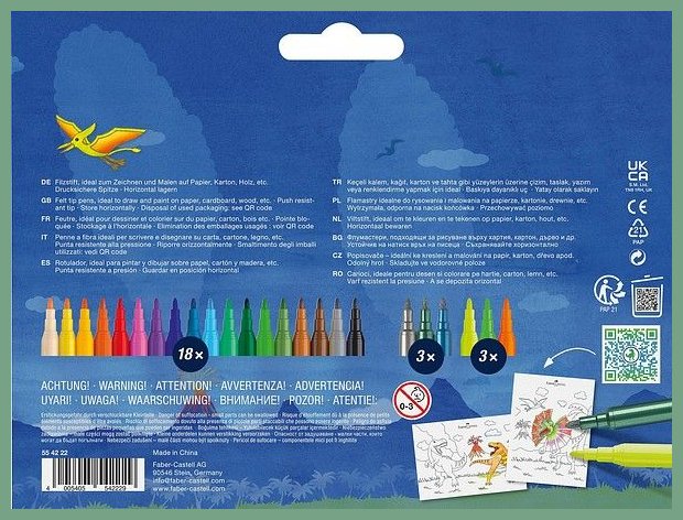 Huopakynä Faber-Castell dinosaurus 18+3+3 väriä sarja. Tämän erinomaisen tuotteen verkkokauppa tilauksen kuljetus perille asti kestää 1-2 päivää. Huopakynissä on kestävä, vakaa kärki ja ne sisältävät kirkkaita, vesipohjaisia värejä, joita voi helposti sekoittaa keskenään. Jokainen veto tarjoaa pehmeän ja sulavan piirtokokemuksen. Suosittu dinosaurusaiheinen pakkaus ilahduttaa niin pieniä taiteilijoita kuin nuoria dinosaurusfaneja. Varma kuljetuspalvelumme toimittaa huopakynän ilman toimituskuluja toimitusosoitteeseen klo 8 - 15 välillä. Helsinki, Turku, Tampere... eli kaikkialle Suomeen.