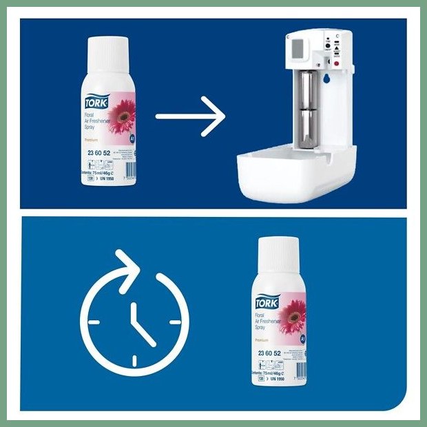Ilmanraikastinannostelija Spray Tork A1 valkoinen. Se on erinomainen ilmanraikastaja, jota toimitetaan kun sitä saapuu varastoon (n. viikko). Tork Elevation -sarjan modernin sulava ja toiminnallinen muotoilu sopii lähes kaikkiin saniteettitiloihin. Nopea uudelleentäyttö: helppo ylläpitää. Pitkään kestävää raikkautta, jopa 90 päivää. Äänimerkki ilmaisee, milloin ilmanraikastaja tai paristot lopussa. Annostelijaan käy 2 kpl LR14/C/baby paristot. Tuotteen mitat: 6 x 9,7 x 17,4cm. Täsmällinen sopimuskuljetuksemme toimittaa ilmanraikastinannostelijan toimitusosoitteeseen työpäivän aikana (8 - 15). Kuopio, Turku, Helsinki... toisin sanoen kaikkialle Suomeen.