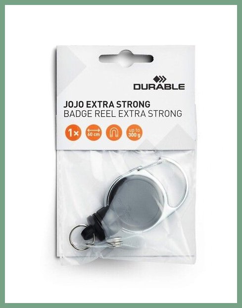 Jojo-pidike Durable 8329 Extra vahva musta 5 kpl/pak. Se on erinomainen toimistotuote, jonka toimitus hoidetaan heti kun sitä saapuu varastoon (n. viikko). Musta, eritysvahva pidikejojo, kestää jopa 300 g painon, 60 cm. Jojo-pidikkeet myydään pakkauksittain, pakkauksessa on 5 kappaletta. Varma toimituspalvelumme kuljettaa jojo-pidikkeen ilmaisella toimituksella toimitusosoitteeseen kello 8.00 - 15.00. Kuopio, Turku, Helsinki... eli kaikkialle Suomeen.