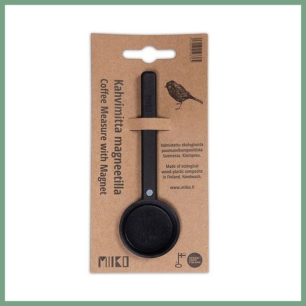 Kahvimitta magneetilla. Tämän erinomaisen kahviotuotteen verkkokauppa tilauksen kuljetus perille asti kestää 1-2 päivää. Kahvimitta on valmistettu ekologisesta puumuovikomposiitista Suomessa. Kahvimitan tilavuus on 17ml. Varressa olevalla magneetilla kiinnität mitan kätevästi metalliseen suodatinpussitelineeseen tai kahvin säilytysrasiaan. Tässä kahvimitassa erityistä on tyylikäs muotoilu ja erinomainen käytettävyys. Luotettava kuljetuspalvelumme toimittaa kahvimitan ilman toimituskuluja toimitusosoitteeseen klo 8 - 15 välillä. Helsinki, Pori, Espoo, Vantaa... toisin sanoen kaikkialle Suomeen.