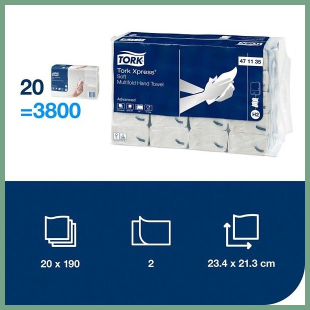 Käsipyyhe Tork H2 Xpress Compressed Soft Multifold M 170ark 12pkt