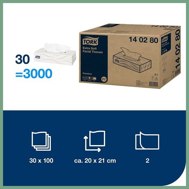 Hinta 1,88€ / 100 kplKasvopyyhe tork premium 2-kert 100kpl. Tämän erinomaisen hygieniatarvikkeen verkkokauppa tilauksen kuljetus perille asti kestää 1-2 päivää. Tork premium extra soft on kaksinkertainen kasvopyyhe laatutietoiselle käyttäjälle. pehmeät, mutta kestävät ja imukykyiset pyyhkeet ovat hellävaraisia ...VarastossaTarkastele