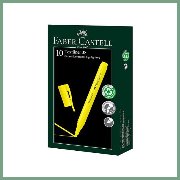 Korostuskynä FC Textliner 38 keltainen (157707) on ympäristöystävällinen toimistotuote. Tämä valmistaja tai tuote on saavuttanut seuraavat ympäristömerkit, ympäristötunnukset sekä laatusertifikaatit. Korostuskynän tasokkaan laadun varmistaa laatusertifikaatti. Eco-toimistotarvikkeet.fi - valikoimaan on valittu runsain mitoin laatusertifioituja toimistotarvikkeita. Suosi luontoa säästäviä toimistotuotteita!