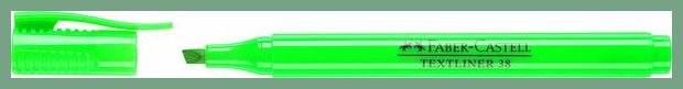 Korostuskynä FC Textliner 38 vihreä (157763). Tämän erinomaisen yliviivaustussin verkkokaupan tilauksen toimitus kestää 1-2 päivää. Textliner 38 on kätevä taskuun sopiva vihreä korostuskynä, jonka tulpassa on näppärä klipsi. Kestävä ja näppärä kärki merkkaa kahdella leveydellä, 1-5 mm. Soveltuu hyvin tavallisille ja erikoispapereille. Saatavana 7 erilaista voimakkaasti fluorisoivaa väriä. Korostuskynät myydään 10 kappaleen erissä, pakkauksessa on 10 kynää. Ympäristöystävällinen valinta: vesipohjainen muste. Runko ja korkki valmistettu 100 % kierrätetystä muovista. Luotettava toimituspalvelumme kuljettaa korostuskynän toimitusosoitteeseen kello 8.00 - 15.00. Turku, Oulu, Helsinki... eli kaikkialle Suomeen.