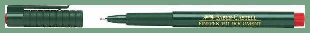 Kuitukärkikynä F-C Finepen 1511 0,4mm punainen. Tämän erinomaisen kynän verkkokauppatilauksen toimitus perille kestää 1-2 päivää. Kapea punainen kuitukärkikynä, joka soveltuu nimenomaan kirjoittamiseen, kärkileveys on 0,4 mm. Kärki on vahvistettu metallilla ja muste on vesiliukoinen. Saatavana useita eri värejä. Kynällä voi kirjoittaa jopa 1200 metriä. Kynän runko ja korkki on valmistettu polypropeenista. Kuitukärkikynät myydään 10 kappaleen erissä, rasiassa on 10 kynää. Luotettava sopimuskuljetuksemme toimittaa kuitukärkikynän toimitusosoitteeseen työpäivän aikana (8 - 15). Helsinki, Turku, Tampere... siis minne tahansa Suomeen.
