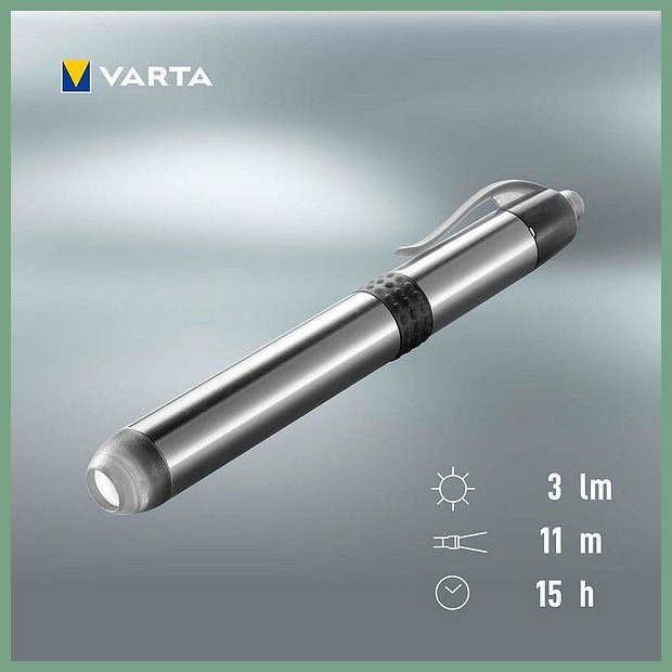 Kynälamppu Varta Pen Light Led sis.paristot, 3 lm. Tämän erinomaisen vapaa-ajantuotteen toimituksen kesto verkkokaupasta tilattuna 1-2 päivää. Varta Pen Light- kynälamppu. Näppärä alumiinirunkoinen kynänmallinen Led-taskulamppu. Valokeila 11m ja valoteho 3 lumenea. Kynälamppu toimii yhdellä AAA-paristolla joka sisältyy pakettiin. Käyttöaika noin 15 tuntia yhdellä paristolla. Takuu : 3 vuotta. Varma toimituspalvelumme kuljettaa kynälampun ilmaisella toimituksella toimitusosoitteeseen kello 8.00 - 15.00. Helsinki, Turku, Tampere... siis minne tahansa Suomeen.