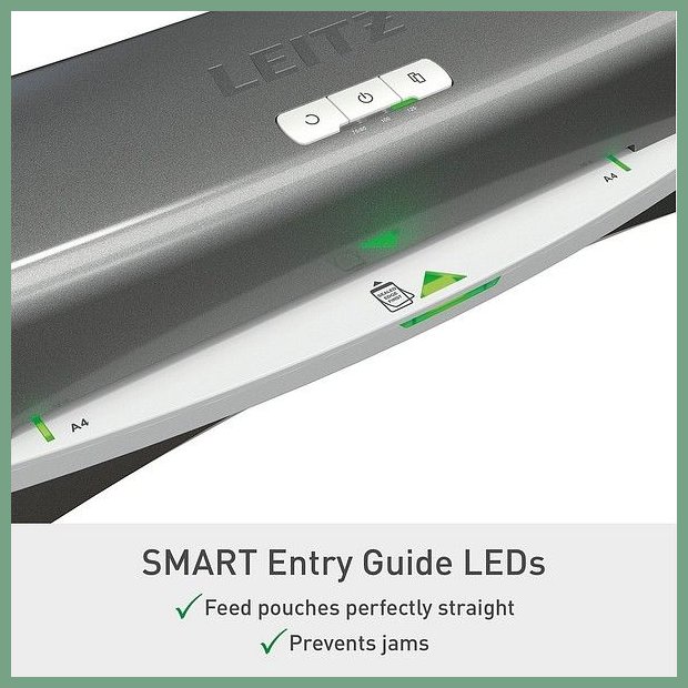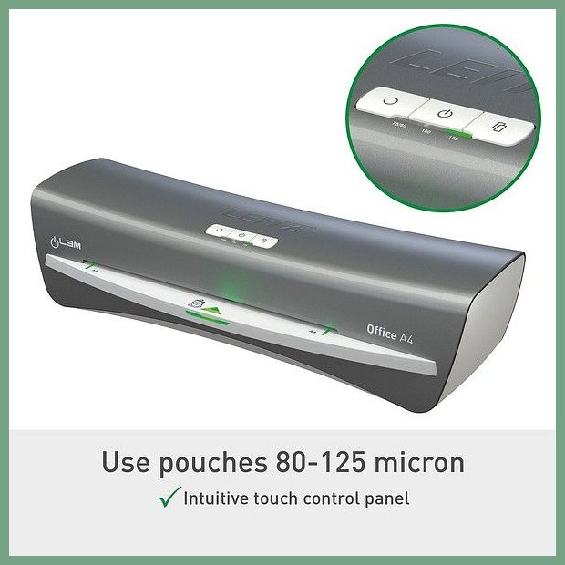 Laminointikone a4 Leitz hopea iLam Office. Tämän erinomaisen toimistotarvikkeen verkkokauppa tilauksen kuljetus perille asti kestää 1-2 päivää. Tyylikäs ja nopea A4-laminointilaite kompaktilla designilla ja käyttäjäystävällisillä ominaisuuksilla. Laite on käyttövalmis 1 minuutissa ja se laminoi A4-arkin 45 sekunnissa. LED-valo ja äänimerkki kertovat, kun laminointi on valmis. Siinä on myös alhainen energiankulutus ja automaattinen virran katkaisu 30 minuutin käyttämättömyyden jälkeen. Sopii 80-125 micronin taskuille. Laminointilaite on ihanteellinen toimistoon ja pienten erien laminointiin nopean lämmityksen ansiosta. Luotettava toimituspalvelumme kuljettaa laminointikoneen toimitusosoitteeseen kello 8.00 - 15.00. Kuopio, Turku, Helsinki... eli kaikkialle Suomeen.