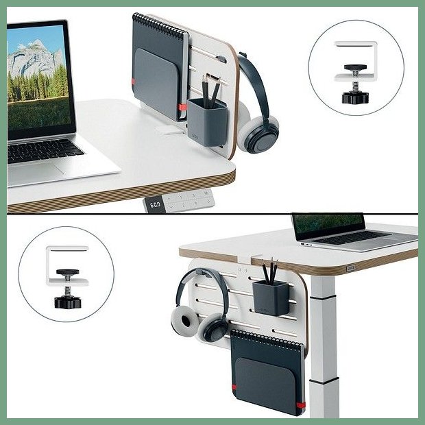 Leitz Ergo pieni säilytystaulu 42x25cm työpöydän reunaan. Tämän erinomaisen ergonomiatuotteen toimituksen kesto verkkokaupasta tilattuna 1-2 päivää. Pidä työpöytäsi siistinä ja hyödynnä käytettävissä oleva tila Leitz Ergo säilytystaulun avulla. Nämä ainutlaatuiset pystysuorat säilytystaulut on helppo asentaa pöydän sivuun tai pöydän päälle tai alle, ja ne tarjoavat säilytystilaa mm. kuulokkeille, vihkoille tai kynille. Pidä kaikki tavarat järjestyksessä, jotta löydät ne helposti ja vapauta arvokasta pöytätilaa. Aseta vain mukana toimitetut vahvat, 85 % kierrätetystä muovista valmistetut säilytystarvikkeet (1 x muistilehtiöpidike, 1 x kynäteline ja 1 x ripustuskoukku kuulokemikrofonille) luodaksesi oman näköisesi työpisteen. Saksassa suunniteltu ja yhteensopiva useimpien pöytien kanssa, joiden pöytälevyn enimmäispaksuus on 35 mm, säilytystaulu on helppo asentaa ja se on arvokas lisä Leitz Ergo työpöydille (65340001 tai 65360001). Säilytystaulu on valmistettu kestävästä 8 mm:n MDF-levystä, joka varmistaa lujuuden ja vakauden, ja pehmeät kumityynyt suojaavat pöydän pintaa naarmuilta. Pysy aktiivisena ja TUNNE OLOSI HYVINVOIVAKSI Leitzin kanssa. • Pieni pystysuora säilytystaulu on 42 cm leveä ja 25 cm korkea • Helppo asentaa mukana toimitetulla kuusiokoloavaimella (ei porausta); pehmeät kumityynyt suojaavat pöydän pintaa naarmuilta • Se on arvokas lisä Leitz Ergo työpöytiimme (65340001 tai 65360001), saatavana on myös suurempi säilytystaulu kannettavan tietokoneen pidikkeellä (65490000) • Kompakti ja täysin kierrätettävä muoviton pakkaus. Varma toimituspalvelumme kuljettaa tämän tuotteen ilmaisella toimituksella toimitusosoitteeseen kello 8.00 - 15.00. Turku, Oulu, Helsinki... eli kaikkialle Suomeen.