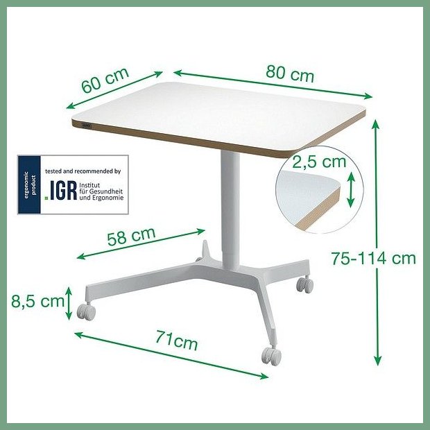 Leitz Ergo säädettävä työpöytä 80x60cm pyörillä. Tämän erinomaisen ergonomiatuotteen toimituksen kesto verkkokaupasta tilattuna 1-2 päivää. ISTU - SEISO - LIIKU. Tavoitteletpa sitten terveellisempää elämäntapaa tai haluat välttää kipuja ja särkyjä työskennellessäsi, tilaa säästävä liikutettava työpöytä nostaa työtilasi uusiin ulottuvuuksiin. Kompakti muotoilu 80 x 60 cm:n työpöydällä sopii joustavaan käyttöön ja työpöydäksi, kun tilaa on rajoitetusti. Se sopii erinomaisesti pieneksi kotitoimiston työpöydäksi tai työpöydäksi hot desking -tiloihin tai kokoushuoneisiin, ja siinä on tilaa näytölle, kannettavalle tietokoneelle, näppäimistölle ja muille lisävarusteille, kuten rannetuille ja hiirimatoille. Yhdistettynä näppärään Leitz Ergo säilytystauluun (saatavana erikseen), joka luo pystysuuntaista säilytystilaa ja pitää työpöydän siistinä. Tässä pöydässä on pehmeä pneumaattinen korkeussäätö, jonka avulla voit löytää täydellisen ergonomisen asennon. Vaihda helposti istumisen ja seisomisen välillä, mikä edistää lihasten liikkuvuutta ja vaikuttaa myönteisesti hyvinvointiin. Pöytää on helppo siirtää tarvittaessa 4 lukittavan pyörän avulla. • Helppokäyttöinen pneumaattinen korkeudensäätö 75-114 cm, joka sopii kaiken pituisille • 80 x 60 x 2,5 cm:n työpöytä, jossa on enintään 20 kg:n kuormitus kannettavalle tietokoneen telineelle, näppäimistölle, hiirelle ja rannetuelle • 4 lukittavaa 360° pyörää, jotka soveltuvat käytettäväksi kaikilla lattiatyypeillä (laatta, laminaatti, puu, matto) • FSC-sertifioitu, TÜV- ja GS-sertifioitu PPP 51962A-standardin mukaisesti • 2+1 vuoden takuu - rekisteröidy saadaksesi lisävuoden takuu https://www.leitz.com/fi-fi/content/tuoterekisterointi/. Nopea kuljetuspalvelumme toimittaa tämän tuotteen ilman toimituskuluja toimitusosoitteeseen klo 8 - 15 välillä. Kuopio, Turku, Helsinki... siis minne tahansa Suomeen.