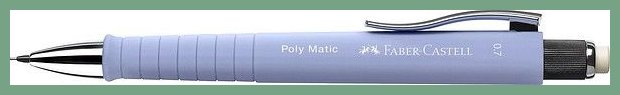 Lyijytäytekynä Poly Matic 0,7mm Pale Iris. Se on erinomainen kirjoitusväline, jonka verkkokaupan tilauksen toimitus kestää 1-2 päivää. Faber-Castellin Poly Matic kynissä on trendivärit ja pehmeä kolmiomainen otepinta, joten kynä pysyy hyvin kädessä. Lyijytäytekynä 0,7 mm lyijyllä. Kynän päässä on pyyhekumi. Lyijy 0,7mm ja kovuusluokka on B. Luotettava sopimuskuljetuksemme toimittaa lyijytäytekynän toimitusosoitteeseen työpäivän aikana (8 - 15). Turku, Oulu, Helsinki... toisin sanoen kaikkialle Suomeen.