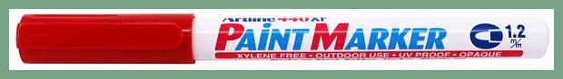 Maalikynä Artline EK-440XF punainen 1,2mm. Artline maalikynät sopivat hyvin useimpien pintojen merkitsemiseen niin sisällä kuin ulkonakin. Maalikynässä on vedenkestävä ksyleeniton voimakasvärinen muste, jonka jälki kuivuu nopeasti ja joka ei haalistu helposti. Artline kynät sopivat hyvin esimerkiksi rakennusteollisuuden, tehtaiden, koulujen ja käsityöläisten käyttöön. Ennen käyttöönottoa ravista maalikynää tulppa suljettuna ja pumppaa kärkeä kevyesti pintaa vasten. Näin saat musteen kulkemaan hyvin. Maalikynän tuottaman jäljen haalistuessa pyyhi kynän kärki paperilla tai kankaalla. Maalikynän toimitusaika verkkokaupasta tilattuna on 1-2 päivää. Nopea toimituspalvelumme kuljettaa maalikynän ilmaisella toimituksella toimitusosoitteeseen kello 8.00 - 15.00. Helsinki, Turku, Tampere... siis minne tahansa Suomeen.