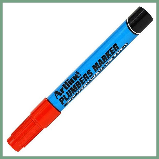 Markkeri Artline Plumbers EKPR-PLM punainen 2,3mm pyöreä. Se on hyvälaatuinen toimistotuote, jonka verkkokauppa tilauksen kuljetus perille asti kestää 1-2 päivää. Artlinen EKPR-PLM Plumbers markerilla voi kirjoittaa putkiin, muoviin, metalliin ja kupariin. Putkimiehen markerin erityinen muste mahdollistaa kirjoittamisen myös märille pinnoille (pl. vettä imevät pinnat, kuten märkä puu tai paperi). Tussissa on pyöreä, 2,3 mm kestävä kärki. Saatavilla myös mustalla musteella. Markkerit myydään 12 kappaleen erissä, pakkauksessa on 12 kappaletta. Tehokas toimituspalvelumme kuljettaa markkerin toimitusosoitteeseen kello 8.00 - 15.00. Kuopio, Turku, Helsinki... toisin sanoen kaikkialle Suomeen.