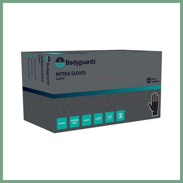Nitriilikäsine Bodyguards GL897 9/Large musta puuteriton 100kpl