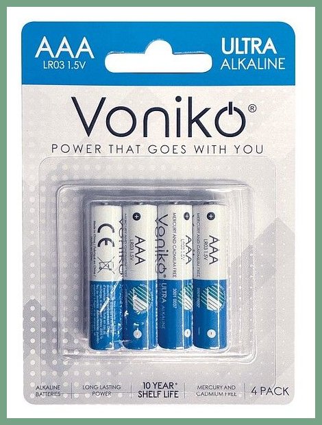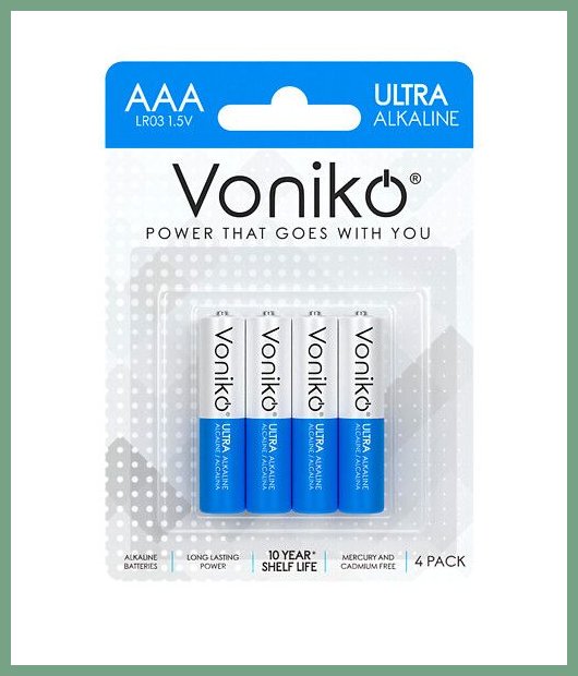 AAA paristo LR03 Voniko Ultra 1,5V 1300mAh 4kpl. Se on hyvälaatuinen tuote, jonka verkkokauppatilauksen toimitus perille kestää 1-2 päivää. Voniko alkaliparistot on varustettu SCM/Super Conducting Materials -tekniikalla joka takaa pitkäaikaisen virran . Valikoimamme Voniko alkaliparistot on valikoitu suuren tehon ja käyttöiän mukaan takaamaan luotettavan käytön kaikissa kohteissa. Innovatiivinen pakkaussuunnittelu ja ainutlaatuinen värimaailma täydentävät ensiluokkaisen laadun. Ihanteellinen vaihtoehto käytettäväksi kaikenlaisissa elektronisille laitteissa. Käyttö- ja varastointilämpötila -10 ? - 50 ?. Luotettava kuljetuspalvelumme toimittaa AAA pariston toimitusosoitteeseen klo 8 - 15 välillä. Helsinki, Turku, Tampere... eli kaikkialle Suomeen.