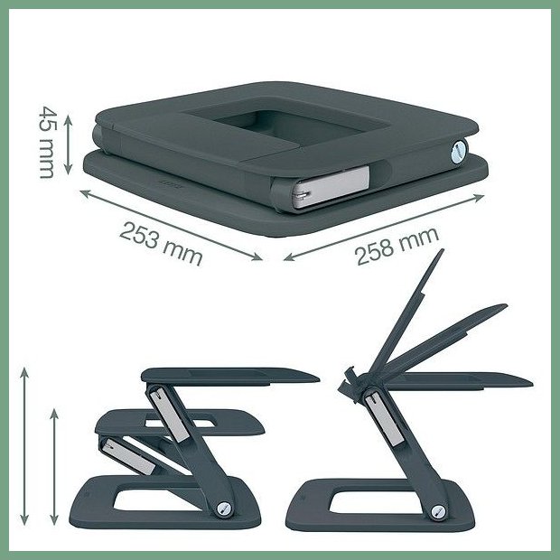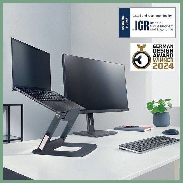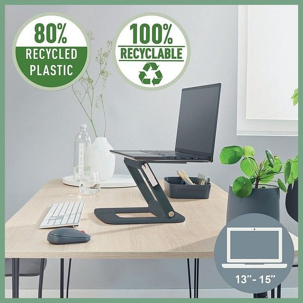 Pöytäteline Leitz Ergo säädettävä. Se on tasokas toimistotarvike, jonka verkkokauppatilauksen toimitus perille kestää 1-2 päivää. Leitz Ergo teline nostaa kannettavan tietokoneen näytön täydelliselle ergonomiselle korkeudelle, mikä lisää katselumukavuutta ja parantaa ryhtiä. Erilaisia korkeus- ja kulmayhdistelmiä, mukaan lukien vaakasuora linjaus, pienellä jalanjäljellä kompakteihin työpöytiin. Tuote on valmistettu 80% kierrätetystä muovista, ja on 100% kierrätettävä kun metalliosat erottelee muovista. Teline on korkealaatuinen ja pitkäikäinen, mikä auttaa säästämään maapallon resursseja. Kannettavan tietokoneen telineen käyttö edistää myös ilmavirtaa, jolloin kannettavan tietokoneen akku ja muut komponentit pysyvät viileinä ja suorituskyky säilyy korkeana. ? Saksan terveys- ja ergonomiainstituutin (IGR) testaama ja suosittelema DIN 26800 EN ISO 15537 -standardin m. Täsmällinen sopimuskuljetuksemme toimittaa pöytätelineen ilman toimituskuluja toimitusosoitteeseen työpäivän aikana (8 - 15). Turku, Oulu, Helsinki... eli kaikkialle Suomeen.