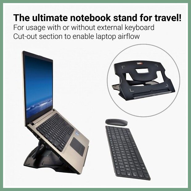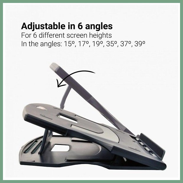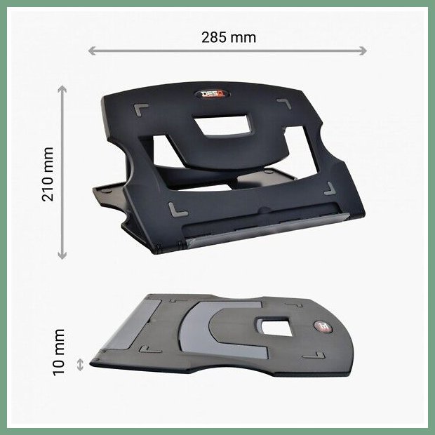 Pöytäteline tabletille Desq kannettavalle tietokoneelle. Se on hyvä ergonomiatuote, jonka toimituksen kesto verkkokaupasta tilattuna 1-2 päivää. Sopii käytettäväksi sekä erillisen näppäimistön kanssa tai ilman sitä. Taittuu litteäksi, 10mm, ja on kevyenä, 365gr, helppo säilyttää yhdessä kannettavan tietokoneen kanssa. Max 15 tuumaiselle näytölle. Nostaa konetta aina 15,5 cm, jolloin näyttö tulee katseen korkeudelle. Säädettävissä 6 eri katselukulmaan 15/17/19/35/37/39 astetta. Haihduttaa myös laitteen tuottamaa lämpöä. Luotettava toimituspalvelumme kuljettaa pöytätelineen tabletille ilmaisella toimituksella toimitusosoitteeseen kello 8.00 - 15.00. Turku, Oulu, Helsinki... eli kaikkialle Suomeen.