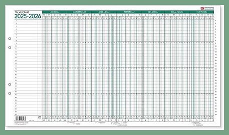 CC 6406 Suuri vuosikalenteri 2026 – ekologinen ja helppolukuinen ratkaisu CC 6406 Suuri vuosikalenteri 2026 yhdistää selkeyden, käytännöllisyyden ja ekologisuuden. Tämä kookas, taulukkomuotoinen vuosikalenteri esittää koko vuoden yhdellä silmäyksellä ja sopii erinomaisesti sekä ...Hinta 2,60€ / kplTarkasteleVarastossa- + -