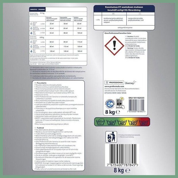 Hinta 60,86€ / kplPyykinpesujauhe Omo prof. sensitive 8kg. Se on tasokas puhdistustarvike, jonka verkkokauppatilauksen toimitus perille kestää 1-2 päivää. Omo professional sensitive color on sekä herkkäihoisille että tekstiileille hellävarainen pyykinpesujauhe, jolla poistat tehokkaasti vaikeatkin tahrat. jauhe ...VarastossaTarkastele- +
