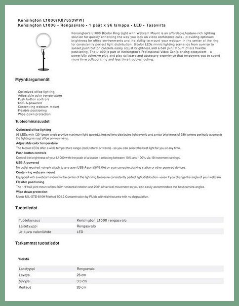 Tämä rengasvalo on luokiteltu ympäristöystävälliseksi. Katso lisäinfoa ekologisuudesta ja tutustu muihin ekotuotteisiin Ekologiset toimistotarvikkeet -sivulla.