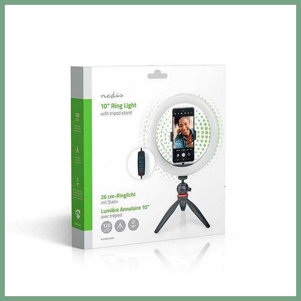 Rengasvalo 120 LED LED. Se on hyvä toimistotuote, jota toimitetaan kun sitä saapuu varastoon (n. viikko). Rengasvalolla ja kolmijalalla varmistat parhaan valaistuksen selfieihin, vlogeihin, opetusvideoihin sekä TikTok-, Instagram- tai YouTube-videoihin. 10 tuuman rengasvalo ja sen 120 yksittäistä LED-valoa takaavat tasaisen valaistuksen, jotta olet aina parhaimmillasi. Aseta valaisin pöydälle, kiinnitä älypuhelin ja aloita kuvaaminen. Rengasvalo on helppokäyttöinen. Kiinnitä puhelimesi rengasvalon keskellä olevaan joustavaan telineeseen. Voit taivuttaa joustavaa telinettä haluamallasi tavalla, joten saat aina parhaan mahdollisen kuvakulman ja lopputuloksen. Käännä valo itseäsi kohti tai poispäin itsestäsi tai aseta se kulmaan. Kauko-ohjaimella voit itse valita ihanteellisen valaistuksen kymmenestä erilaisesta valaistustilasta. Näin saat aina haluamasi tehosteen videoihisi. Rengasvalo saa virtansa USB-liitännän kautta tietokoneesta, varavirtalähteestä tai mistä tahansa USB-virtasovittimesta. Luotettava sopimuskuljetuksemme toimittaa rengasvalon toimitusosoitteeseen työpäivän aikana (8 - 15). Helsinki, Turku, Tampere... siis minne tahansa Suomeen.