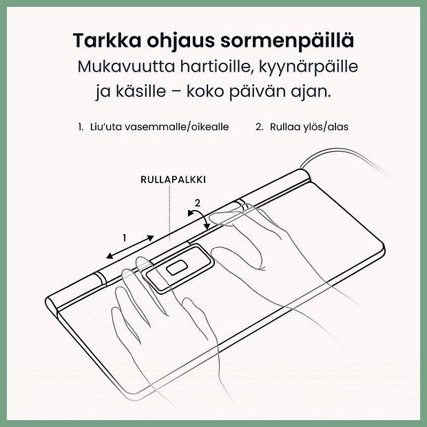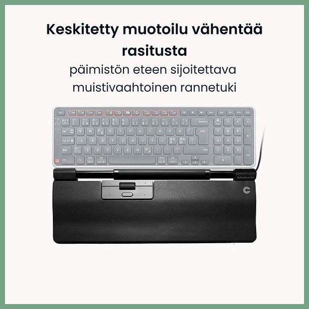 Rollermouse Contour Pro EXT langallinen hiiriohjain. Se on erinomainen oheislaite, jonka toimituksen kesto verkkokaupasta tilattuna 1-2 päivää. RollerMouse Pro -hiiriohjain niissä yhdistyvät tyylikäs muotoilu sekä kehon jännityksiä ehkäisevät toiminnot. Työtyytyväisyys ja tuottavuus paranevat, kun työskentelyasento on tasapainoinen ja rento. Haluamme mullistaa toimistotyön ja parantaa työntekijöiden terveyttä ja työhyvinvointia sekä ehkäistä työstä johtuvia vaivoja. Työnteossa on siirrytty hybridimalliin, jossa voidaan työskennellä niin toimistossa kuin kotonakin, minkä vuoksi Contour tarjoaa ainutlaatuisia ratkaisuja, jotka miellyttävät silmää ja sopivat työpöydälle missä tahansa se sijaitseekin. RollerMouse Pro noudattaa skandinaavisen designin periaatteita yhdistäen korkean laadun ja pelkistetyn muotoilun. Työhyvinvoinnissa ennaltaehkäisy on avainasemassa. RollerMouse Prossa yhdistyvät upea, pelkistetty skandinaavinen muotoilu ja ainutlaatuiset toiminnot, jotka ehkäisevät kehon rasittumista. Sen ansiosta työskentelyasento on rento ja voit tehdä toimistotyötä käsivarret mukavasti suoraan kehon edessä. Mukava ja jännityksiä ehkäisevä työskentelyasento parantaa työhyvinvointia. Muokattavissa fyysisten tarpeiden ja yksilöllisen tyylin mukaisesti. Rollerbar-tankoa voidaan hallita molemmilla käsillä ja se vaatii vain kevyen kosketuksen. Nopea toimituspalvelumme kuljettaa rollermousen ilmaisella toimituksella toimitusosoitteeseen kello 8.00 - 15.00. Turku, Oulu, Helsinki... siis minne tahansa Suomeen.