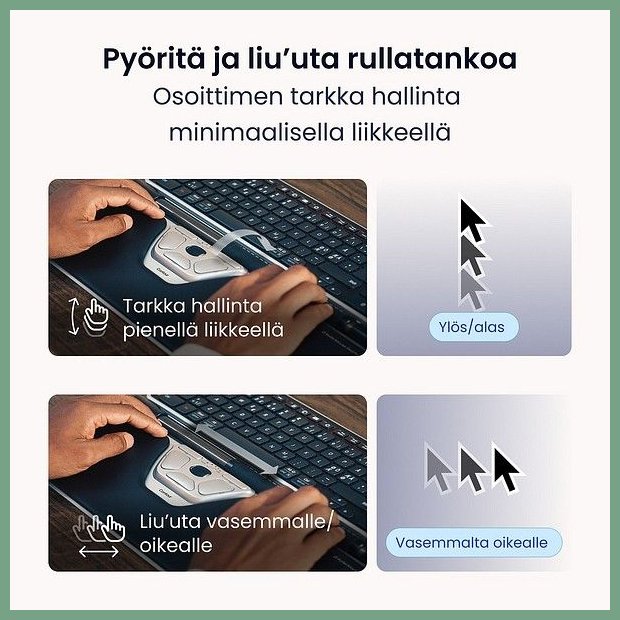 Hinta 223,61€ / KPLLiitettävyys: USB-johto, Bluetooth 5.2 tai 2.4G USB-vastaanotin. Langaton RollerMouse Go käyttää Bluetooth-yhteyttä tai USB-A-vastaanotinta ja tarjoaa 36 kuukauden käyttöajan yhdellä latauksella (USB-C-portti). Ei tarvitse yhdistää tietokoneeseen se toimii saumattomasti ja vähentää ...