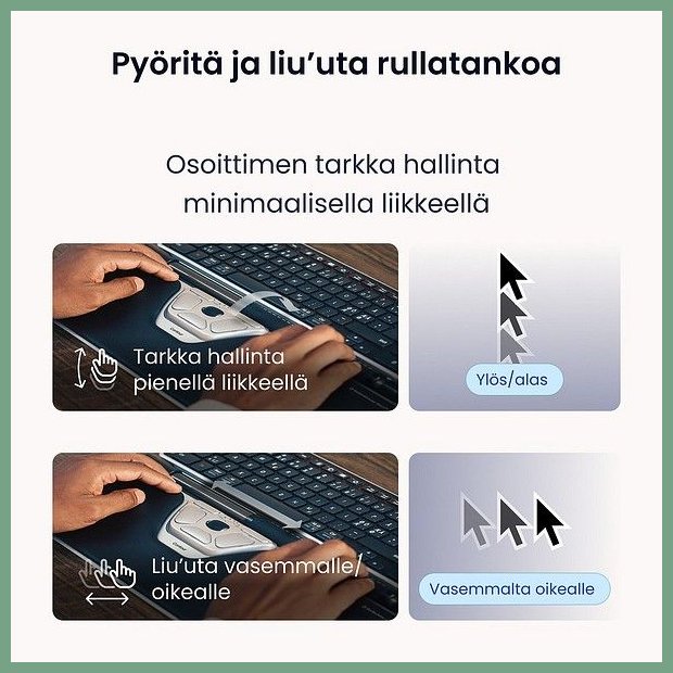 Hinta 223,61€ / KPLLiitettävyys: USB-johto, Bluetooth 5.2 tai 2.4G USB-vastaanotin. Langaton RollerMouse Go käyttää Bluetooth-yhteyttä tai USB-A-vastaanotinta ja tarjoaa 36 kuukauden käyttöajan yhdellä latauksella (USB-C-portti). Ei tarvitse yhdistää tietokoneeseen se toimii saumattomasti ja vähentää ...