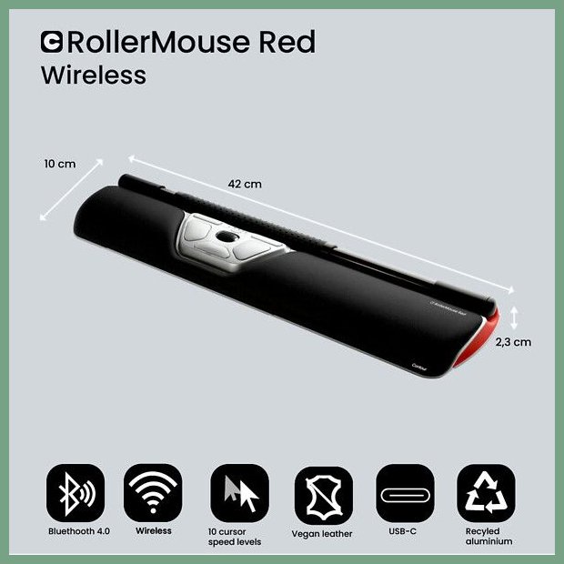 Hinta 223,61€ / KPLLiitettävyys: USB-johto, Bluetooth 5.2 tai 2.4G USB-vastaanotin. Langaton RollerMouse Go käyttää Bluetooth-yhteyttä tai USB-A-vastaanotinta ja tarjoaa 36 kuukauden käyttöajan yhdellä latauksella (USB-C-portti). Ei tarvitse yhdistää tietokoneeseen se toimii saumattomasti ja vähentää ...