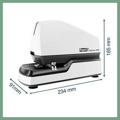 Sähkönitoja Rapid Optima 60 60 arkkia. Se on hyvä toimistotuote, jota toimitetaan kun sitä saapuu varastoon (n. viikko). Ominaisuudet: Täysin automaattinen sähkönitoja Nitoo jopa 60 arkkia kerralla (80 g/m²) Hygieeninen käyttö ? ei kosketusta käytön aikana Säädettävä nidontasyvyys 5?30 mm LED-sensori ilmoittaa niittien vähyydestä Tukokseton nitominen Rapid Optima -niiteillä Kompakti ja tyylikäs muotoilu Tekniset tiedot: Väri: Valkoinen Materiaali: Metalli, muovikotelo ja elektroniset osat Mitat: 91 × 165 × 234 mm Paino: 1,33 kg Nidontakapasiteetti: 6 mm / 60 arkkia (80 g/m²) Nidontasyvyys: Säädettävä 5?30 mm Nidontatyyppi: Nidonta Latausmekanismi: Edestä täytettävä Elektroninen: Kyllä Yhteensopivat niitit: Rapid Optima 56 (2?20 arkkia) ja Rapid Optima HD70 (20?60 arkkia) Pakkaus sisältää: Rapid Optima 60E sähkönitoja Verkkovirtasovitin 5000 kpl Rapid Optima H. Nopea kuljetuspalvelumme toimittaa sähkönitojan ilman toimituskuluja toimitusosoitteeseen klo 8 - 15 välillä. Turku, Oulu, Helsinki... siis minne tahansa Suomeen.