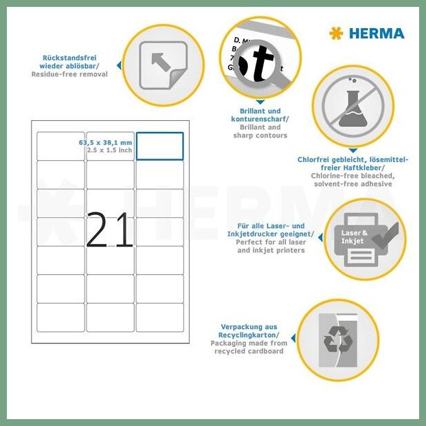 Siirrettävä tarra Herma 5074 63,5x38,1 mm 21-osainen 25 ark hinta 14,09€