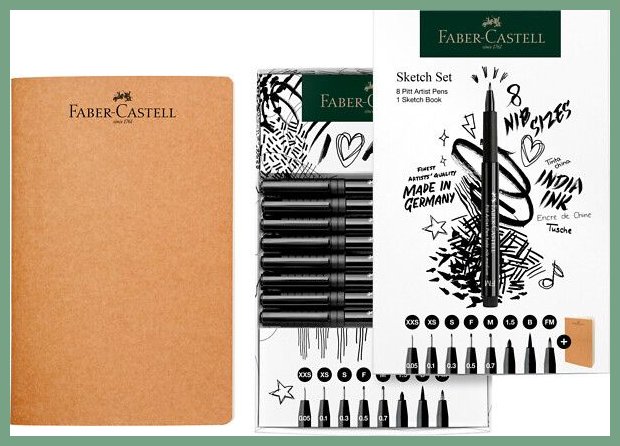 Sivellinkynäsarja Faber-Castell Pitt musta 8 leveyttä, luonnoskirja hinta 37,28€