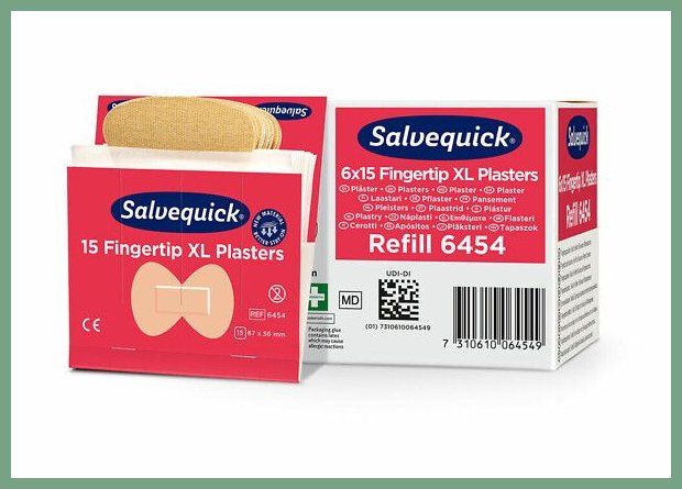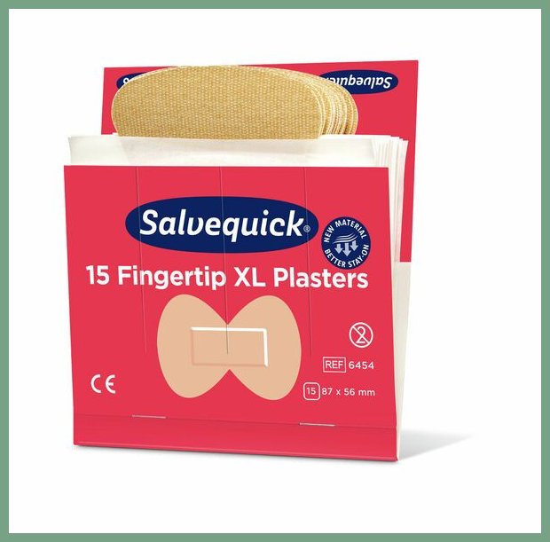 Sormenpäälaastari Salvequick XL 6x15kpl. Tämän erinomaisen hoitotarvikkeen toimituksen kesto verkkokaupasta tilattuna 1-2 päivää. Salvequick sormenpäälaastari on joustava, hyvin kiinnittyvä, allergiatestattu kangaslaastari. Muotoiltu laastari on helppo asettaa sormenpäähän. Pakkauksessa 15 kpl 87 x 56 (23) mm laastaria. Täydennyspakkaus Salvequick laastariautomaattiin. Täsmällinen toimituspalvelumme kuljettaa sormenpäälaastarin ilmaisella toimituksella toimitusosoitteeseen kello 8.00 - 15.00. Kuopio, Turku, Helsinki... eli kaikkialle Suomeen.