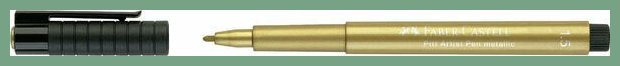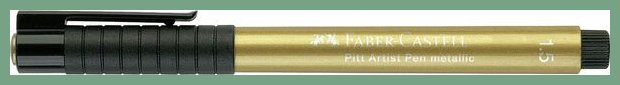 Taiteilijatussi Faber-Castell Pitt Pen kulta. Se on hyvä taiteilijatarvike, jonka verkkokaupan tilauksen toimitus kestää 1-2 päivää. Faber-Castell Pitt kynät ovat taiteilijatason huopakyniä joissa on erittäin hyvin valoa kestävä pigmentti. Kultainen väri juoksee kynästä helposti ilman ravistelua ja kärjen painelua. Tehokas sopimuskuljetuksemme toimittaa taiteilijatussin ilman toimituskuluja toimitusosoitteeseen työpäivän aikana (8 - 15). Kuopio, Turku, Helsinki... toisin sanoen kaikkialle Suomeen.