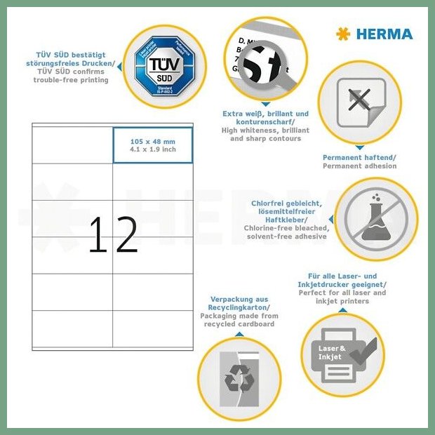 Tarra-arkki Herma Premium 4457 A4/12-os 105x48mm 100ark hinta 32,95€
