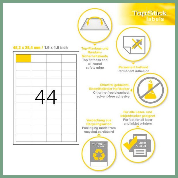 Tarra-arkki Top Stick 8731 A4/44-osainen 48,3x25,4mm 100ark hinta 12,16€