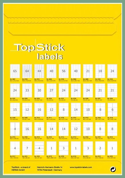 Tarra-arkki Top Stick 8697 A4/65-osainen 38x21,2mm 100ark